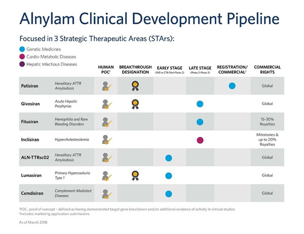 基于这项研发合作,再生元将负责对肝细胞表达、遗传学验证的HSD17B13靶点进行研究,Alnylam将利用其RNAi治疗平台来识别针对该靶点的化合物。再生元和Alnylam打算在未来进行单独的五五分合作(fifty-fifty collaboration),以进一步研发和推广由此次合作产生的任何治疗候选产品。